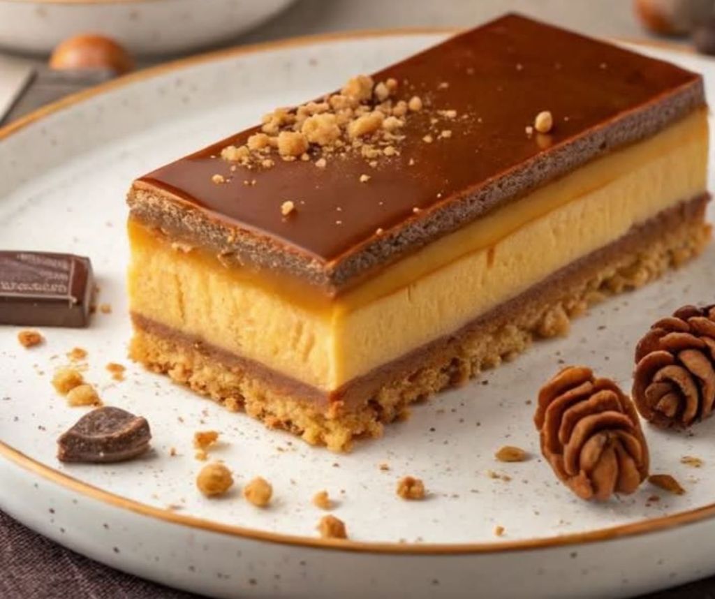 3. التجميع: اسكب الكراميل على القاعدة. اترك حتى يبرد.