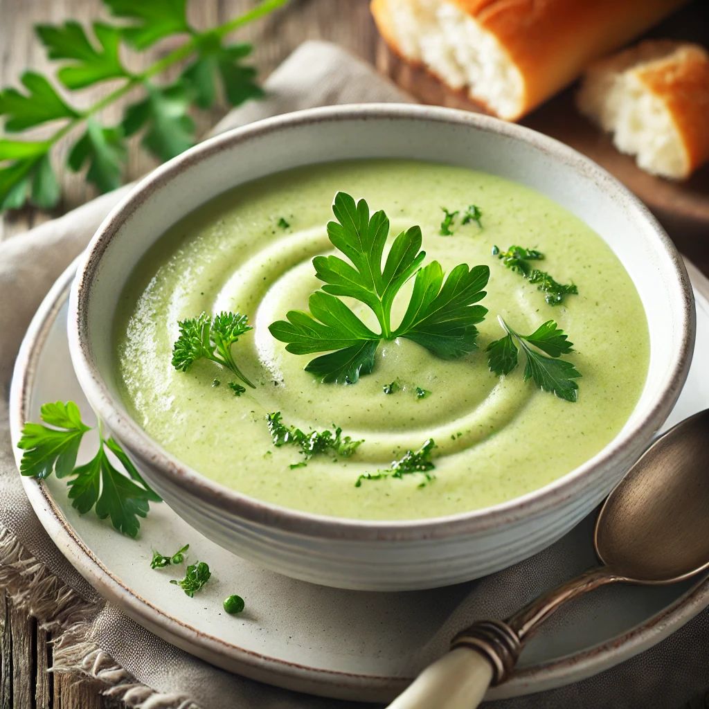 سخني الحساء لبضع دقائق دون أن يغلي، ثم قدميه مزينًا بالبقدونس.