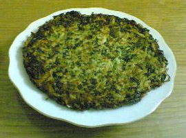 تسخن مقلاة ويوضع بها حوالي 5 ملاعق زيت وبعد أن يسخن يغرف من الخليط مقدار كبشة ويوضع في مقلاة وتفرش على هيئة قرص على نار متوسطة وتترك بدون تقليب لمدة 10 دقائق