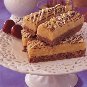 يُسكَب الكراميل ويُوزَّع على العجينة المخبوزة في القالب ويُترَك حتى يبرد كلياً