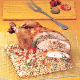 الدجاج المحمر والمحشي بالأرز