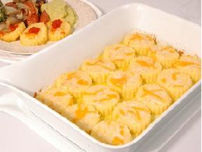 تُترك لتبرد و تُقلب على الطاولة و تُقطع بالقطاعة الدائرية وتٌرص في صينية مدهونة بقليل من الزبد و يُدهن على سطحها أيضاً بالزبد و يُرش عليها الجبن الشيدر و البارميزان ثم تُوضع في الفرن مرة أخرى لمدة 5-10 دقيقة