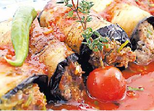 يُوضع إصبع الكفتة فوق شريحة الباذنجان وتُلف وتُرص في الصينية بحيث يكون الجزء الملفوف في الأسفل حتى الانتهاء من الكمية