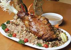 يوضع في صينية الفرن ويلف بورق سيلوفان ويغطى ثم يضاف الماء للصينية