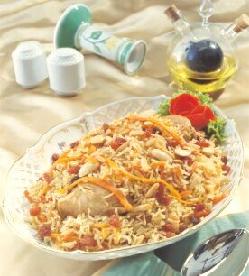 يضاف الأرز والجزر ويترك يغلي بضعة دقائق على نار قوية إلى أن يجف الماء