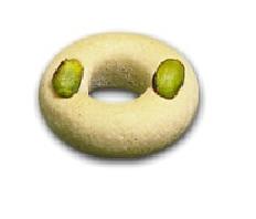 تشكل عجينه اللوز في شكل حلقات و تزين بقطع من الفستق ثم تطهى في فرن ذات حرارة منخفضة لمدة لا تزيد عن 10 دقائق