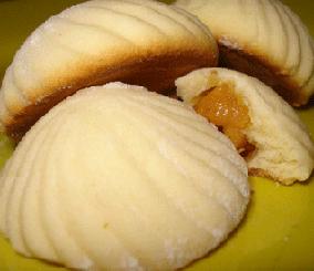 ثم توضع الخلطة على الطحين والنشاء وتخلط جيدا حتى تصبح عجينة متماسكة ولينة