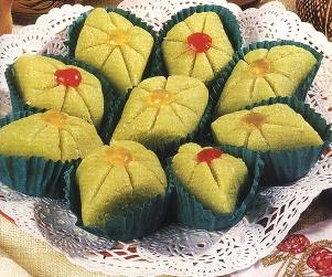 تقطع بواسطة سكين إلى أشكال ونضع فوقها حبة كرز