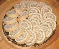 ترفع من الفرن ومباشرة تخرج من الصينية وتوضع على قطعة من ورق الزبدة أو ورق الالومنيوم، وتوزع فوقها الحشو ثم تلف مثل السويسرول