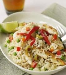 بعد أن يتحمر الدجاج أي أصبح لونها أحمر نضيفها على الأرز ونقلب الجميع