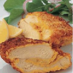 تُقلى صدور الدجاج المغلّفة لمدة تتراوح بين 4 و5 دقائق من الجهتين أو حتى تنضج ويتحوّل لونها ذهبياً