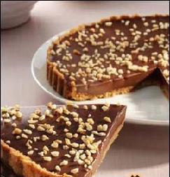 يرشّ الوجه بالبندق المطحون وتُقدم الفطيرة
