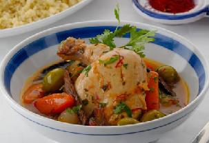 يُضاف الزيتون الأخضر إلى الطبق ويُقدّم