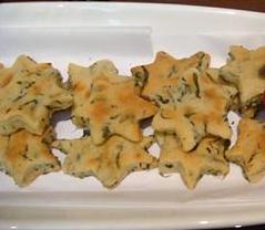 توضع الأشكال المقطعة على صينيه فرن تم دهنها بالزيت كما تدهن أشكال النجوم بزيت الزيتون