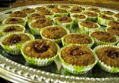تشكل كور مع جعل فتحة في الوسط وتحشى حسب الرغبة (شوكولا نوتيلا – أو جوز – أو بندق – أو أي نوع من المكسرات )