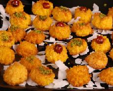 يُوضع الخليط في كيس حلواني و يُشكل على هيئة كرات صغيرة في حجم عين الجمل (حبة الجوز) تُرص على صاج