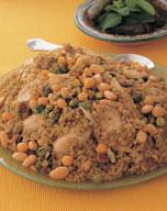 تقدم ساخنة مزينة باللحم أو الدجاج مع اللحم المفروم المحمر بالسمن مع اللوز و الصنوبر