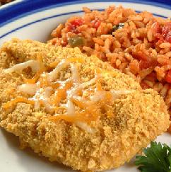في وعاء آخر تخلط الأجبان مع الكريمة الحامضة ويزين الدجاج بها وتقدم مع الرز