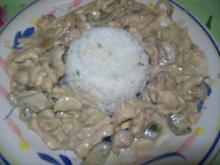 في نفس المقلاة يوضع الدجاج ويقلب حتى يصبح لونه أبيض وقريب من النضج