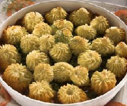 توضع البطاطس في كيس تزيين ثم توزع على اللحم