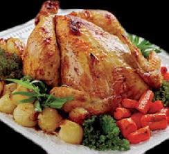 ترفع الدجاجة باستعمال شوكة، ليتساقط منها أية سوائل على البطاطس، تقلب البطاطس لتختلط بسوائل الدجاجة