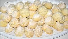 تؤخذ قطع صغيرة من العجين، تحشى بالتمر، وتشكل بالقالب الخاص، وُتوضع في صينية الخبز
