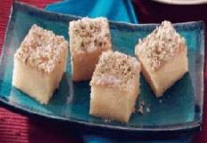 توضع جانباً لتبرد على درجة حرارة الغرفة العادية ثمّ تقطّع إلى مربّعات وتُقدّم