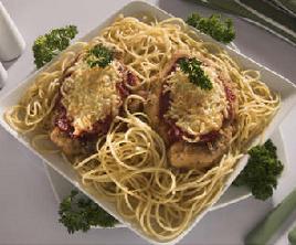 يوضع الفيليه في طبق الفرن وتوزع فوقه الصلصة والجبن
