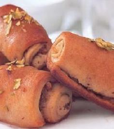 يلف كل شريط مثل السيجار وتصف هذه اللفافات في صينية مدهونة قليلاً بالزيت وتخبز في فرن حرارته 350 درجة فهرنهايت حتى تصبح ذهبية اللون