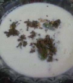يصفى اللبن ويخفق مع بيضة واحدة (اختياري) وقليل من النشاء ثم توضع على نار قوية ويحرك باستمرار بملعقة خشبية حتى الغليان وباتجاه واحد