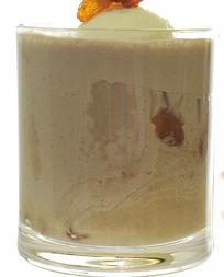 تُصب في أكواب التقديم، وتُزين بقطع من الموز دون تقشير (للحفاظ على لونها)