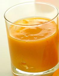 يُصب العصير في كوب التقديم ويُقدم بارداً