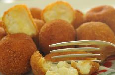 يُشكل خليط الجبن على هيئة كرات تُجوف على شكل كوب صغير