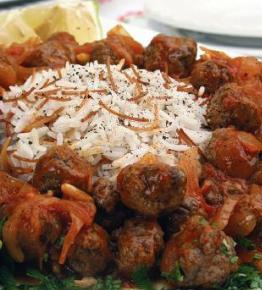 يقرص هذا المزيج إلى كرات صغيرة بحجم حبات الكرز، مع ضرورة غمس اليدين بالماء البارد بين الحين والآخر أثناء تقريص مزيج اللحم لتفادي التصاقه باليدين