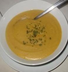 تصب في صحون وتزين بالبقدونس والبصل الأخضر