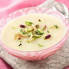 يزين بالفستق المقطع والمكسرات واللوز قبل التقديم