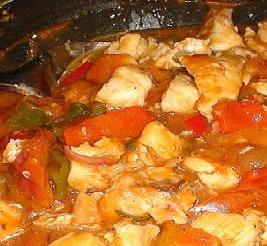 يضاف البصل والفليفلة والأناناس ويقلب جيدا