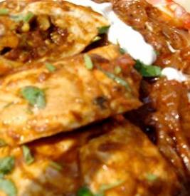 يضاف بعد ذلك الكركم وبهارات الجرام ماسالا والشطة والكزبرة المطحونة والكزبرة الطازجة ورشة ملح ويقلب الخليط لمدة دقيقة على النار ثم يرفع من القدر