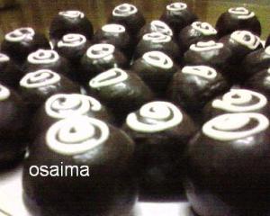 تعجن بخفة وتكور إلى كرات صغيرة ثم تغمس في شوكولا سائحة وتزين بالشوكولا البيضاء