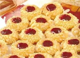 تحضر كويرات صغيرة من العجين تغمس في بياض البيض وترش في اللوز المفروم