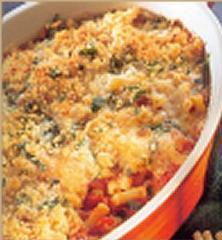 تطبخ الصينية في فرن مسخن مسبقاً لدرجة 375 فْ أو علامة 5 في الفرن الكهربائي، لمدة 25 دقيقة أو حتى يصبح لون الصينية بني ضارب للذهبي ثم تقدم