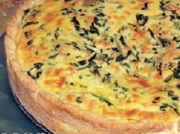 تخرج العجينة من البراد وترق ثم توضع في قالب كعكة الجبنة ثم تخرم العجيـنة بالشوكة حتى لا تنتفخ من الوسط، ثم توضع حشوة السبانخ أولا في وسط القالب، ثم يضاف خليط البيض والجبن على السطح