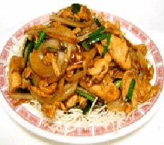 يغلى الدجاج ويضاف إلى المواد السابقة ويضاف صويا صوص