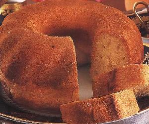 يسكب المزيج بواسطة ملعقة في قالب الكيك مدهون بالزيت وقليل من الدقيق