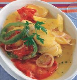 تُسكب الصلصة المُعدّة في طبق البيريكس، وتُغطّى بورق الألومينيوم وتُخبز في فرنٍ مُحمّى على حرارة 200 درجة مئوية لمدة ساعة و30 دقيقة أو حتى تنضج البطاطا
