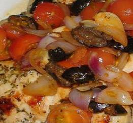 صدور الدجاج مع صلصة الزيتون والبندورة