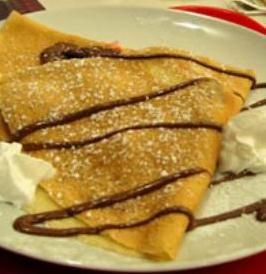 عندما تنضج قطعة الكريب ترفع من على النار وتثنى يسكب عليها القليل من الصوص