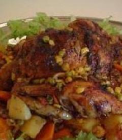 ضعي الدجاجة على الخضار و وزعي باقي الخضار حولها
