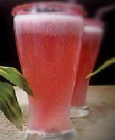 في الخلاط يوضع الرمان مع السكر و الماء و ماء الورد ثم يصفى