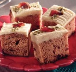 يُخبز المزيج في فرن محمّى على حرارة 190 درجة مئوية لمدة تتراوح بين 30- 35 دقيقة أو حتى يكتسب لوناً بنياً ذهبياً ويُصبح جامداً في الوسط عند الضغط بالإصبع